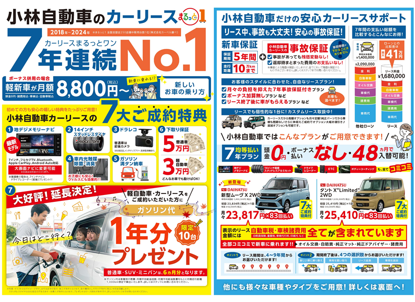 限定10台!大好評につき「ガソリン代1年分プレゼント」を延長いたします。