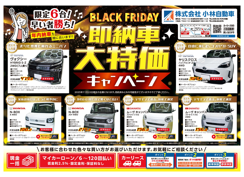 ≪BLACK FRIDAY≫即納車大特価キャンペーン